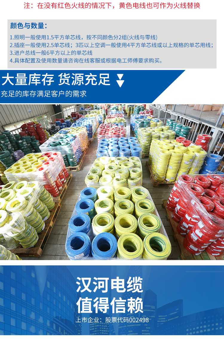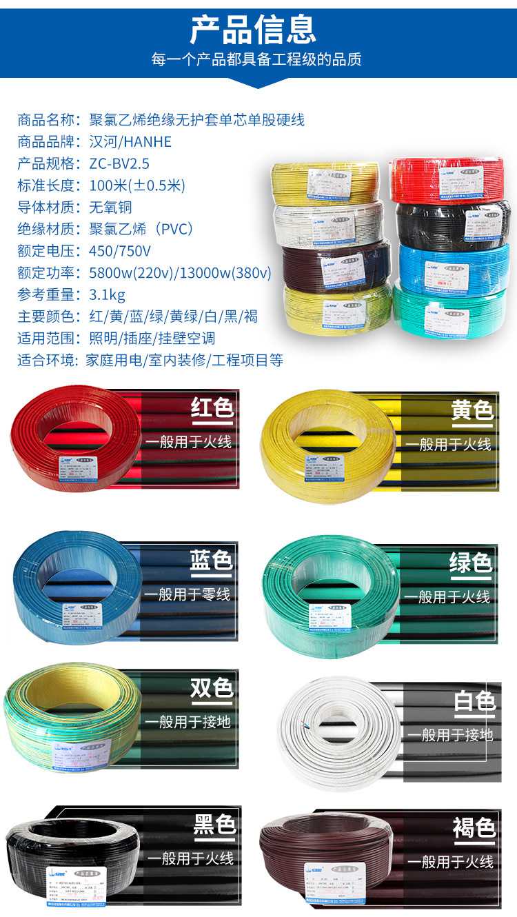 漢河電線電纜ZC-BV2.5平方 銅芯國標家裝電線 單芯單股硬線足米